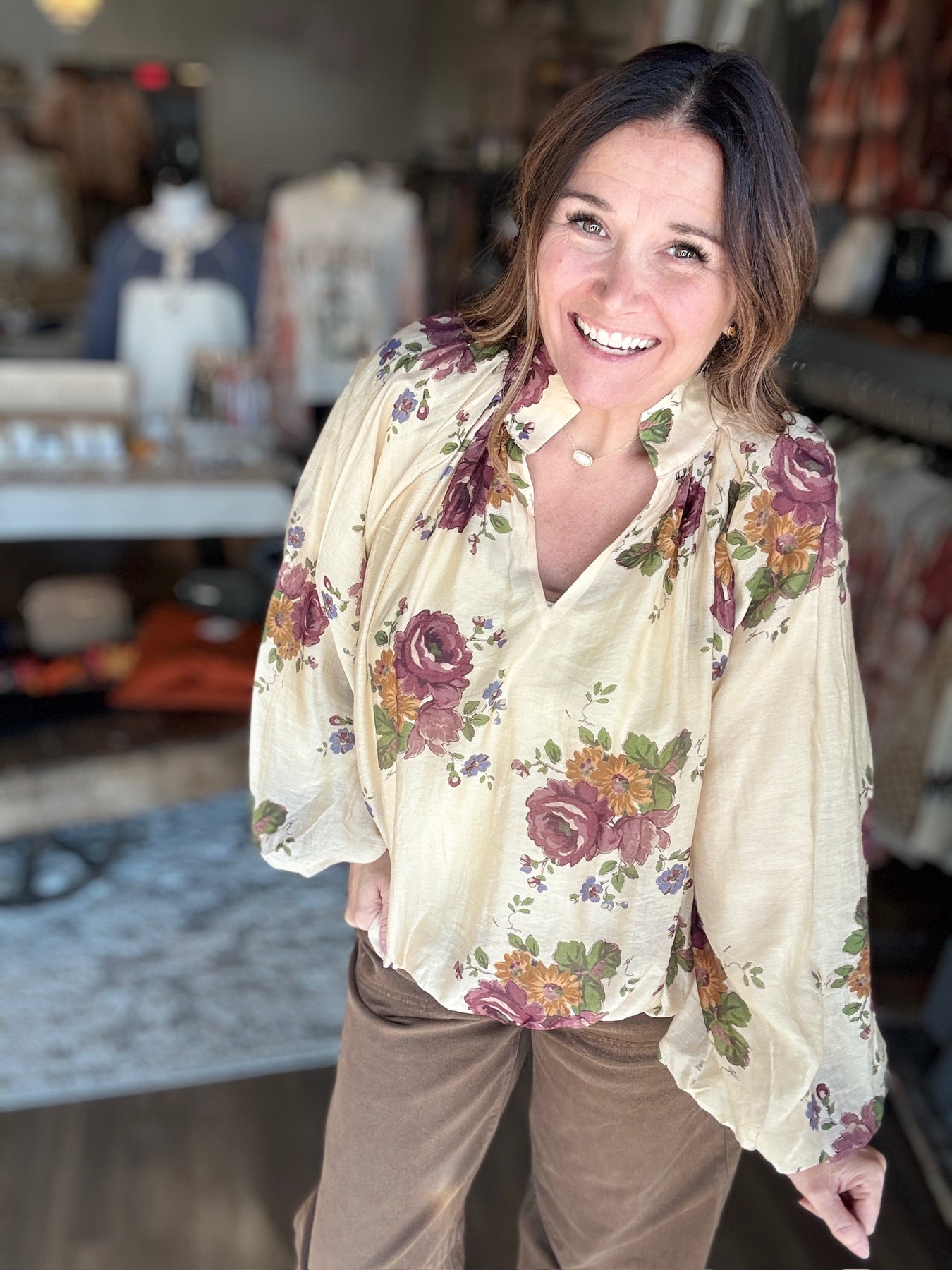 Brighten up your wardrobe with this Floral Bubble Top, featuring the cutest floral pattern and a charming V-neck with a collar. Its sheer fabric paired with a built-in lining keeps things light and breezy, while the cinched wrists and waist create a fun bubble effect. Whether you’re headed to the office or out for a night on the town, this top adds a playful touch to any outfit.