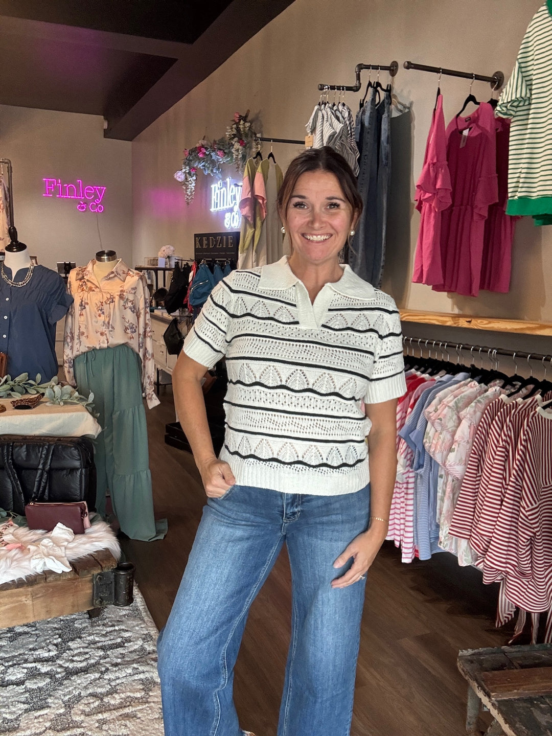 Collared Knit Short Sleeve Top