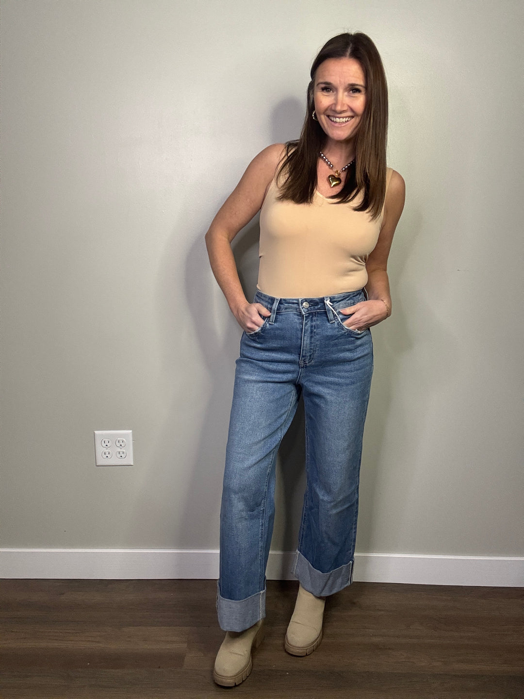 Lovervet Mid Rise Cuffed Straight Leg Jeans