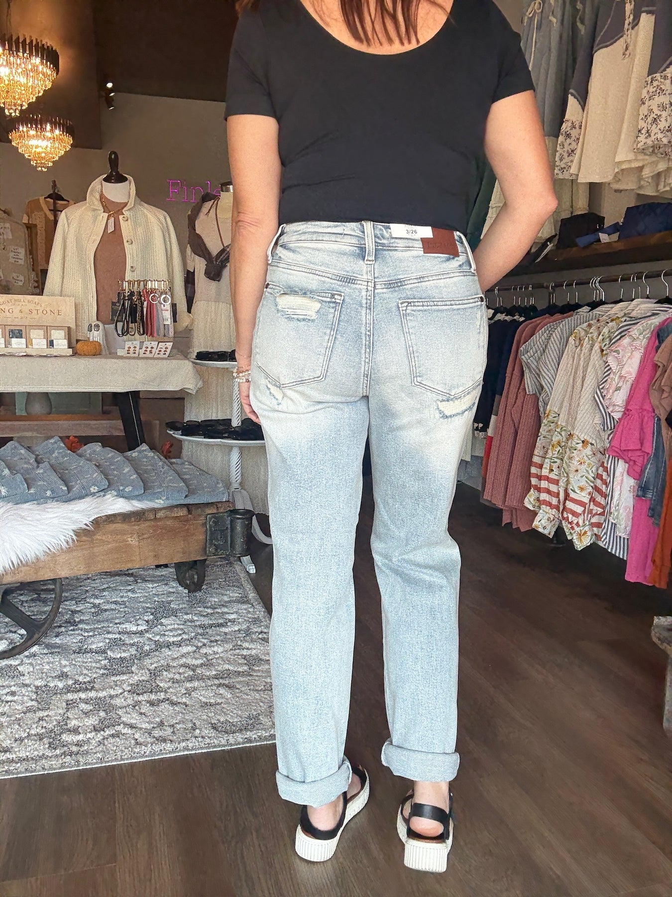 These Judy Blue Mid Rise Boyfriend Distressed Jeans bring the perfect mix of comfort and cool with their light wash and super stretchy fabric. Featuring playful distressed accents and unique stitch details, they effortlessly nail that laid-back, boyfriend fit vibe while hugging you in all the right places. Whether you're out for brunch or a casual day, these jeans keep you comfy and effortlessly stylish.